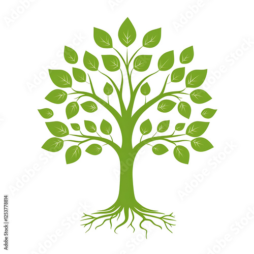© Surachate, Obraz premium Lush Green Tree Design with Leaves and Roots, Nature Symbolism