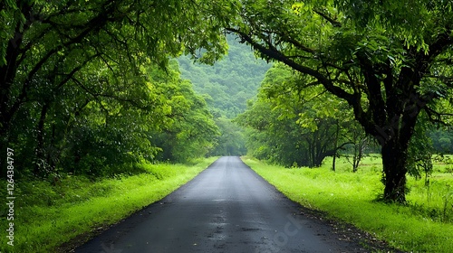 Obraz premium Lush Green Tree Lined Road