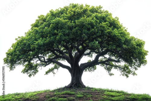 Obraz premium Lush green tree on a small hill isolated on white background. (2)
