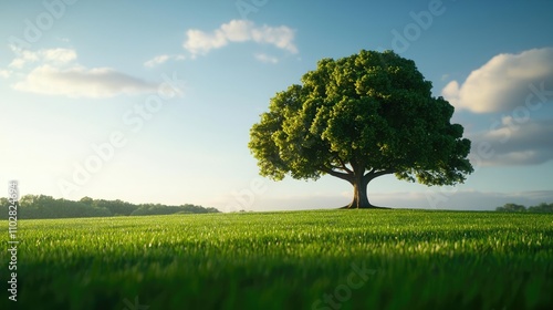 © Tin, Obraz premium Lush green tree standing alone in a bright, serene landscape.