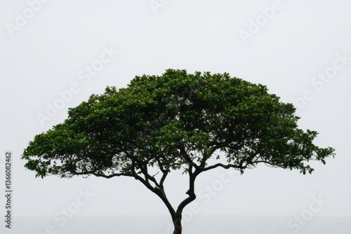 Obraz premium Lush green tree standing out against a stark white background, creating an...