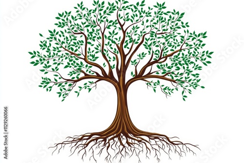© artwiyanastudio, Obraz premium Lush green tree with extensive root system isolated on white background.