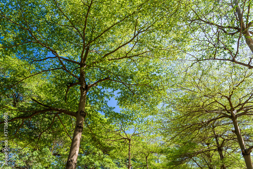 Fototapeta premium Lush green trees in the park