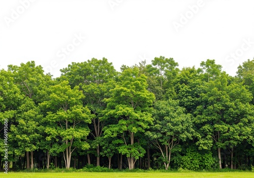 Obraz premium Lush green trees with dense foliage under a bright sky creating a natural and...