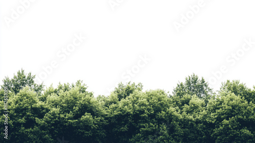 © Steven, Obraz premium Lush green treetops against a stark white sky create a serene and vibrant natural scene, evoking a sense of peace and tranquility.
