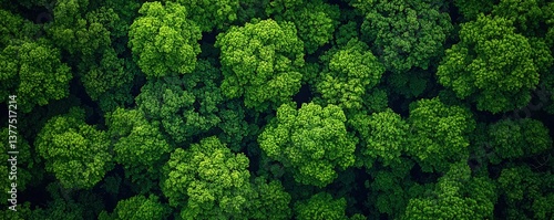 Fototapeta premium Lush green treetops create a vibrant canopy from an aerial view, showcasing...