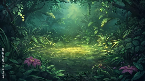 © Adobe, Fototapeta premium Lush Green Tropical Forest Path with Sunlight