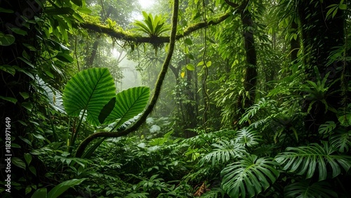 © Wans, Obraz premium Lush Green Tropical Jungle Dense Foliage in Humid Rainforest