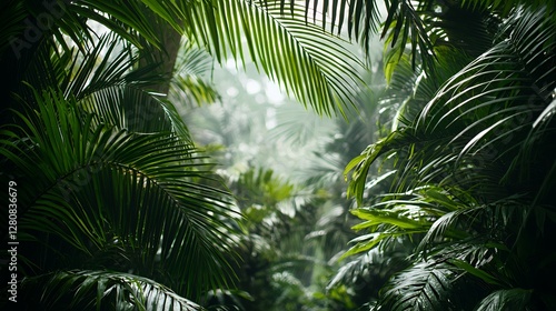 © Indra, Fototapeta premium Lush Green Tropical Jungle with Sunlight and Mist