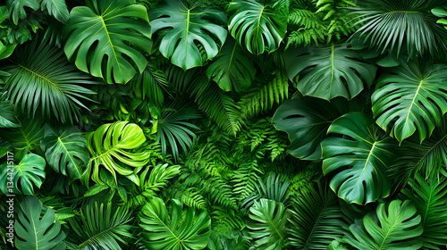 © JUNZEP, Fototapeta premium Lush Green Tropical Leaf Background Image