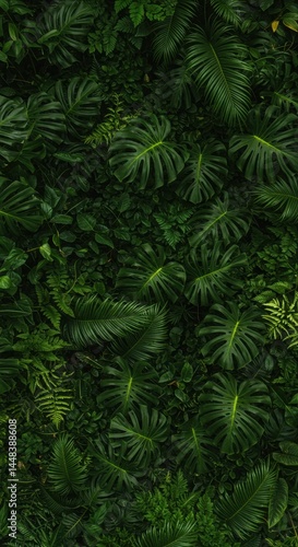 © SnapNest, Fototapeta premium Lush Green Tropical Leaves Background: Monstera Deliciosa and Fern Texture