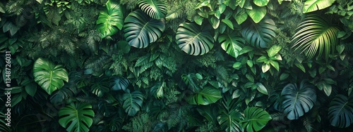 Fototapeta premium Lush green tropical leaves create a vibrant, textured background. Perfect for...