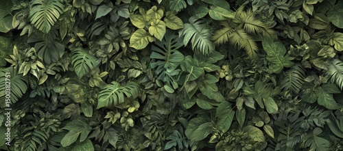 © Forex, Fototapeta premium Lush green tropical leaves densely cover a wall