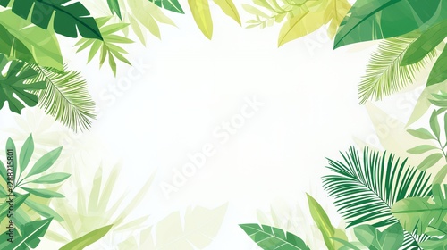 © musa, Fototapeta premium Lush Green Tropical Leaves Frame on White Background