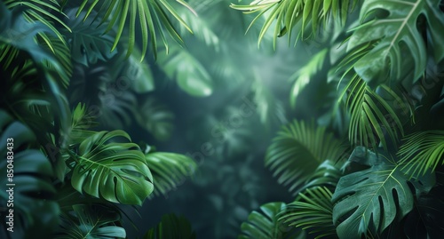 Naklejka premium Lush Green Tropical Leaves In A Jungle