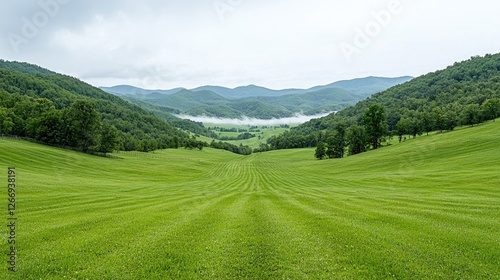 © tugkiara, Fototapeta premium Lush Green Valley with Rolling Hills