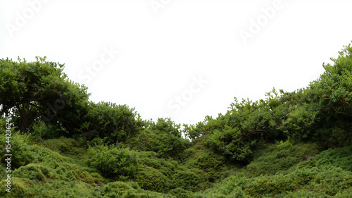 Obraz premium Lush green vegetation covering rolling hills on white background