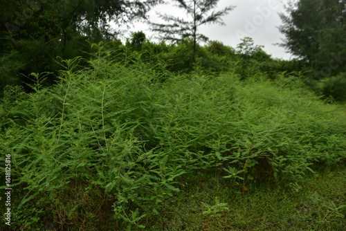 © Golam Rob, Obraz premium Lush green vegetation fills a field under a cloudy sky.