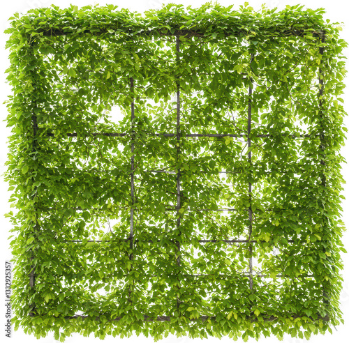 © PNG Creative, Obraz premium Lush Green Vine Covered Trellis Square Frame Natural Foliage Wall Spring Summer Garden Decor