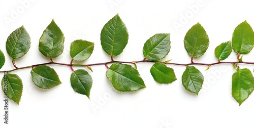 © BerkahStock, Naklejka premium Lush green vine with vibrant leaves isolated on white background.