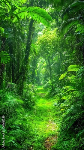Fototapeta premium Lush Green Walkway Through Tropical Rainforest