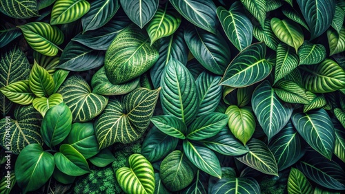 © Urenus Photos, Naklejka premium Lush Greenery A Vibrant Collection of Tropical Foliage, Perfect for Nature-Inspired Designs and Decorative Applications
