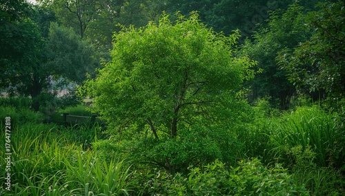 © vxnaghiyev, Obraz premium Lush greenery and vibrant plants on a peaceful Sunday morning outdoors