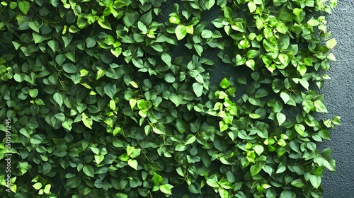 Obraz premium Lush greenery covers a dark wall.