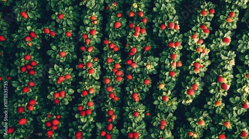 © somsri, Naklejka premium Lush Greenery with Red Fruits in a Farm Field