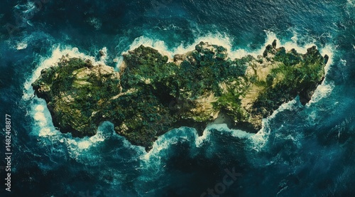 © Alchemist, Fototapeta premium Lush island, aerial view, turquoise waters