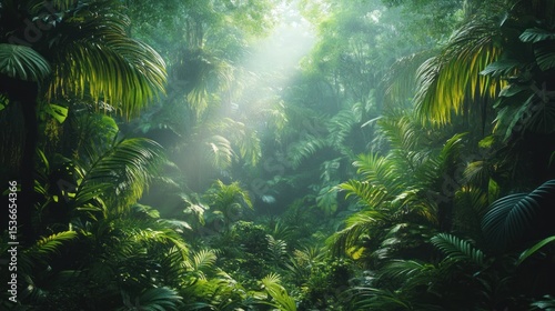 © ganthari, Obraz premium Lush jungle path bathed in sunlight