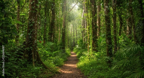 © ERWIN, Fototapeta premium Lush Jungle Path Sunlight Nature Photography Print
