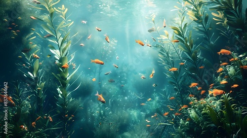 Fototapeta premium Lush Kelp Forest Teeming with Vibrant Marine Life in the Underwater World