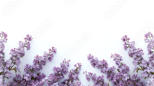Naklejka premium Lush lilac spring flowers bloom against a backdrop of pure white creating a...