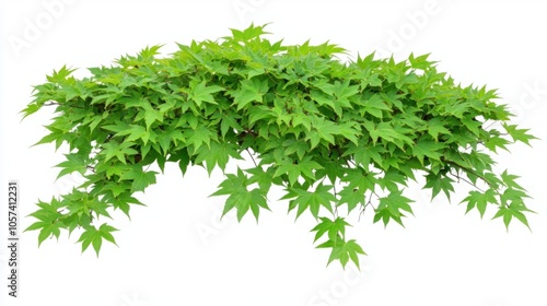 Fototapeta premium Lush maple tree with vibrant green leaves, capturing natural beauty, isolated on white background