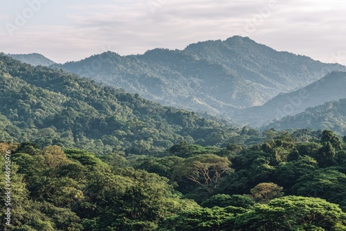 © rengga, Fototapeta premium Lush mountain range covered in dense forest