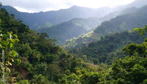 © Luthfi, Fototapeta premium Lush mountain valley, sunlit vista