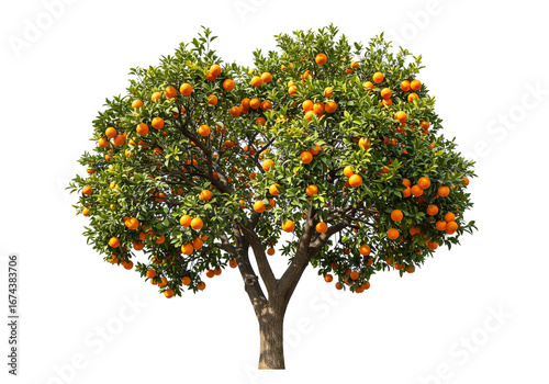 © Madiha, Fototapeta premium Lush orange tree laden with ripe citrus fruit ready for harvest against a clean white backdrop