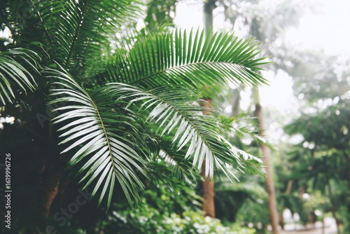 © Space, Naklejka premium Lush palm fronds in a tropical garden