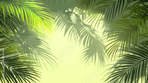 © Jojo*, Fototapeta premium Lush palm leaves casting shadows in a sunlit frame.