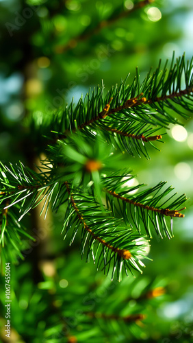 Obraz premium lush pine branch a forest setting