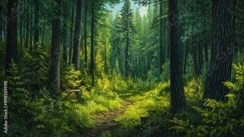 Obraz premium lush pine forest in the height of summer.