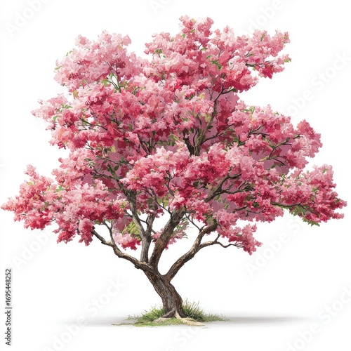 © argus, Obraz premium Lush pink flowering tree, isolated