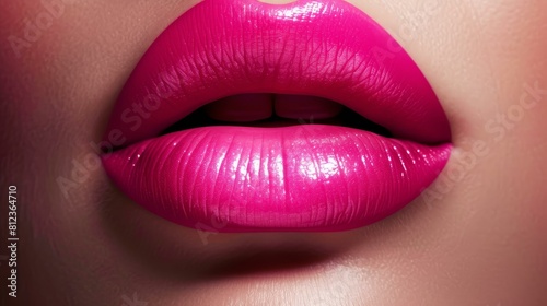 Obraz premium Lush pink lipstick on womans lips, vibrant and glossy, Ai Generated