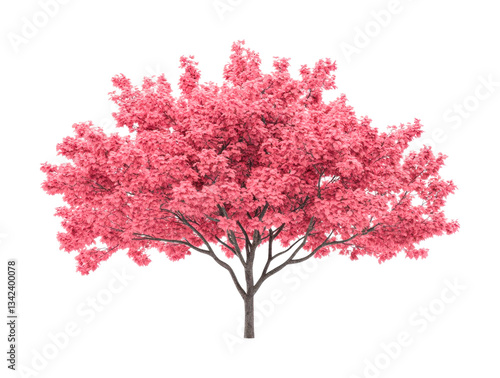 © BraveSpirit, Fototapeta premium Lush pink tree with full blooming canopy and detailed trunk, cut out