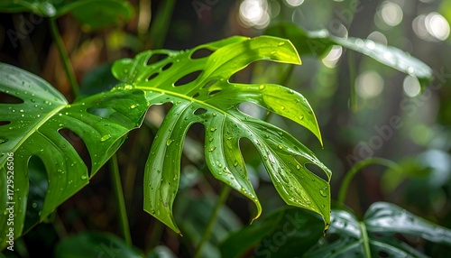 Obraz premium Lush rainforest leaf close-up