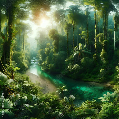 © Onur, Obraz premium Lush Rainforest River