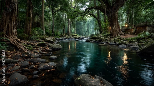 © shadow, Fototapeta premium Lush Rainforest River with Tropical Stream, and Nature.