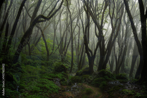 © quickshooting, Obraz premium Lush Rainforest Scene with Sunlight