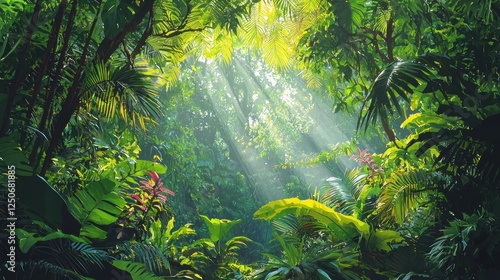 Fototapeta premium Lush Rainforest Sunlight Beams